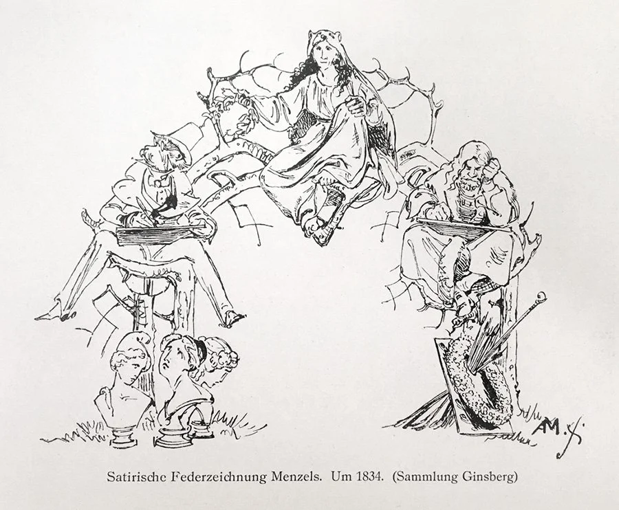 In diesem Umfeld erwarb Ginsberg ein kleinen Konvolut an Menzel Grafik. Er erkannte rasch, dass das grafische Werk Menzels bislang nur unzureichend und teils fehlerhaft dokumentiert worden war und erkor es sich zum Ziel das Werk systematisch zu erschließen und vollständig zusammenzutragen. Dabei kaufte er nicht nur im Kunsthandel sondern auch direkt aus dem Umkreis Adolf Menzels, von seinen Druckern und Verlegern sowie deren Nachkommen.1 Ginsbergs Unterfangen profitierte in den 1910er Jahren auch von den Auflösungen prominenter privater Sammlungen und er konnte auf diesem Weg seltene Probedrucke Menzels erwerben. Fachliche Unterstützung erhielt er durch den Mitarbeiter und späteren Direktor des Berliner Kupferstichkabinetts Elfried Bock. Dieser veröffentlichte 1923 das Werksverzeichnis zum grafischen Werk Menzels, das aus der Katalogisierung der Ginsbergschen Sammlung entstanden war.